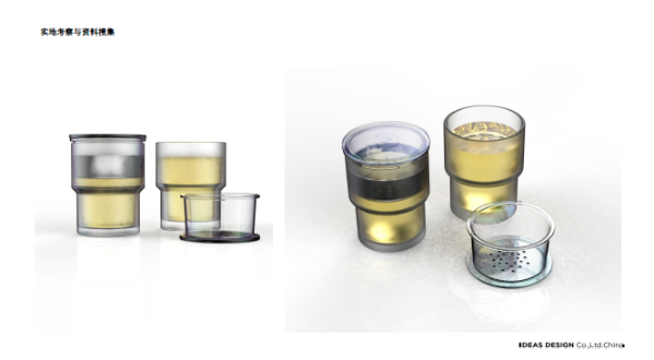 本套纪念杯采用玻璃材质,包括茶杯、茶漏和杯盖3部分。作为原子能院建院70周年文创产品,茶杯以我国第一座重水反应堆(101堆)堆本体外观造型设计,茶盖则有原子能院建院70周年logo。